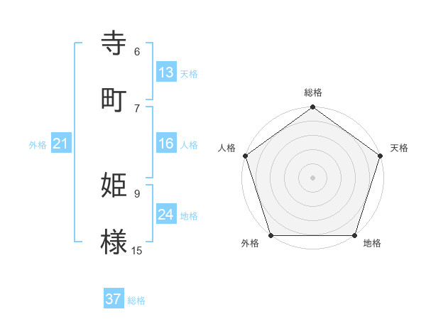 寺町 姫様さんを姓名の画数から五運を鑑定