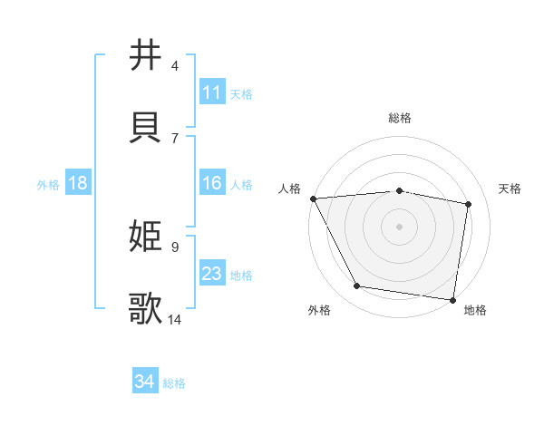 井貝 姫歌さんを姓名の画数から五運を鑑定
