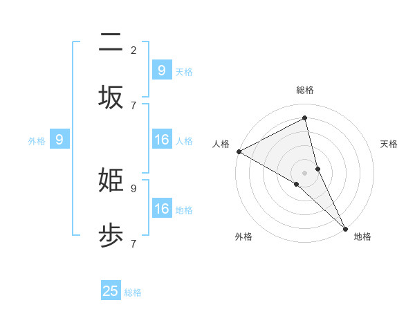 二坂 姫歩さんを姓名の画数から五運を鑑定