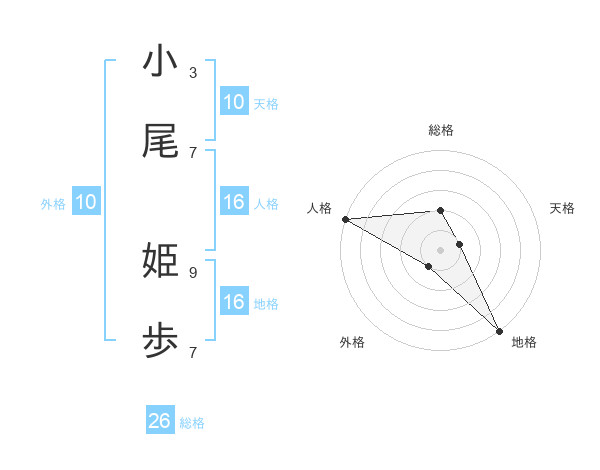 小尾 姫歩さんの総格は26画の2点!
