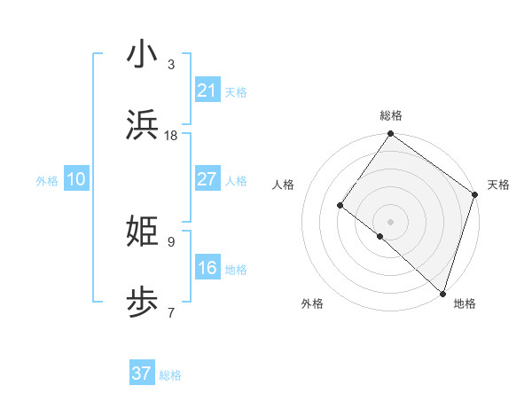 小浜 姫歩さんを姓名の画数から五運を鑑定