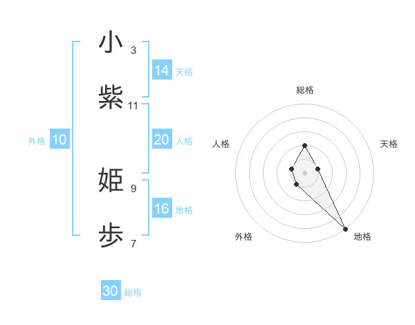 小紫 姫歩さんを姓名の画数から五運を鑑定