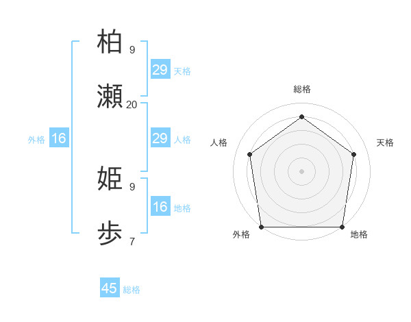 柏瀬 姫歩さんを姓名の画数から五運を鑑定