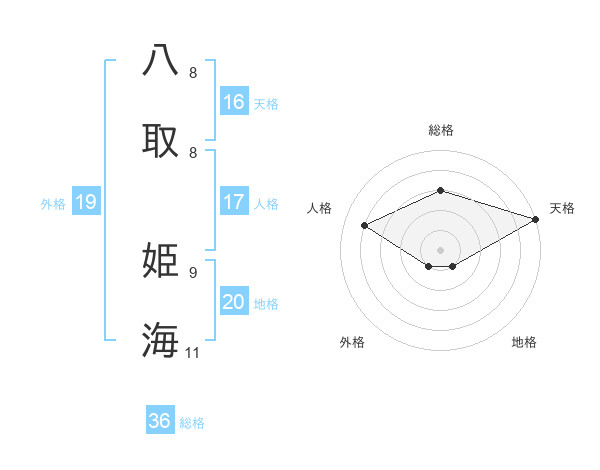 八取 姫海さんの天格は16画の5点!