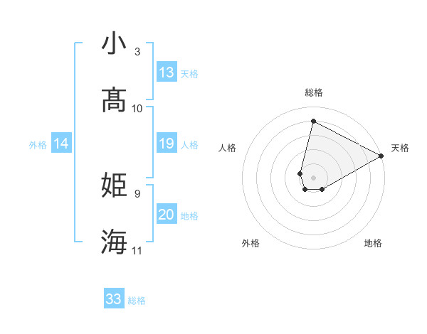小髙 姫海さんの天格は13画の5点!