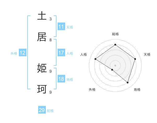 土居 姫珂さんの総格は29画の4点!