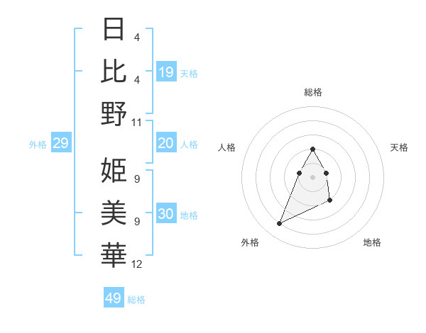 日比野 姫美華さんを姓名の画数から五運を鑑定