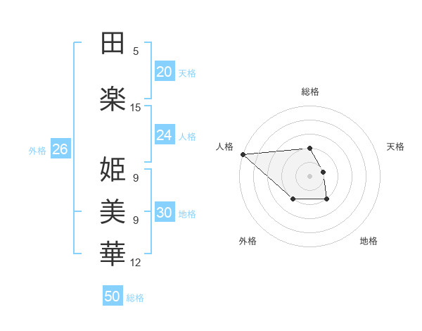 田楽 姫美華さんを姓名の画数から五運を鑑定