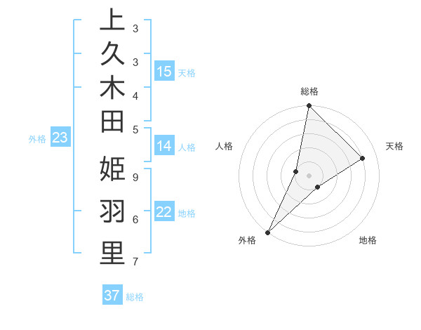 上久木田 姫羽里さんを姓名の画数から五運を鑑定