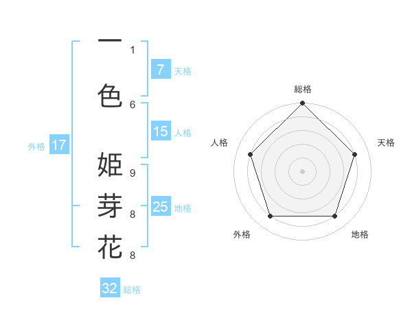 一色 姫芽花さんの地格は25画の4点!