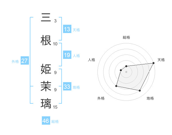 三根 姫茉璃さんを姓名の画数から五運を鑑定