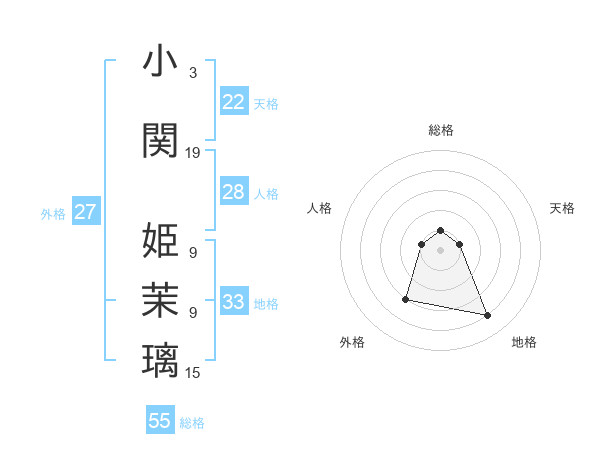小関 姫茉璃さんを姓名の画数から五運を鑑定