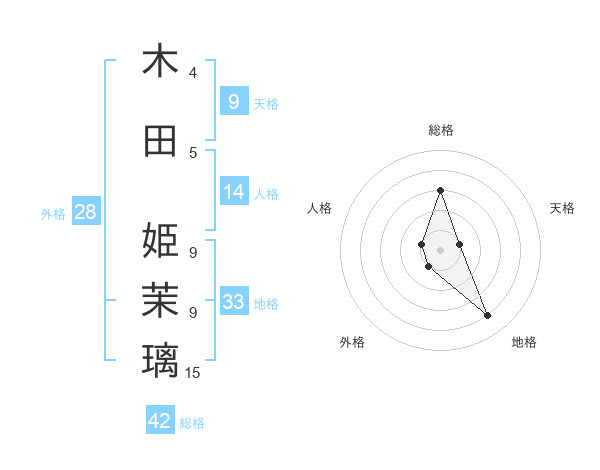木田 姫茉璃さんを姓名の画数から五運を鑑定