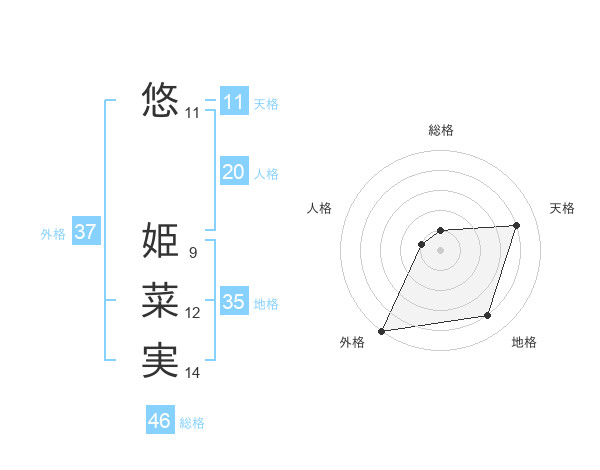 悠 姫菜実さんの天格は11画の4点!
