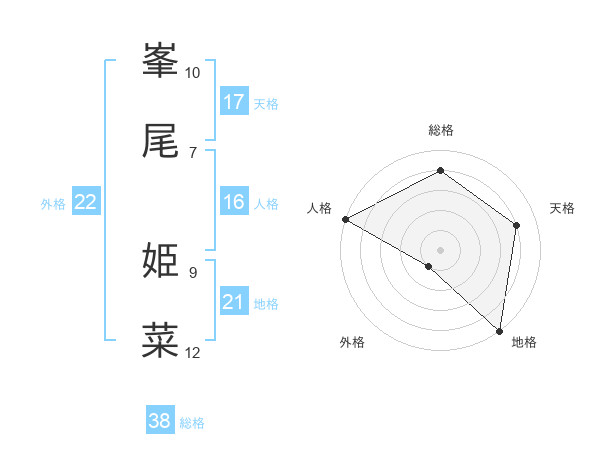 峯尾 姫菜さんの総格は38画の4点!