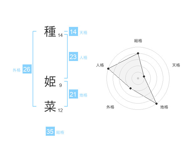 種 姫菜さんの天格は14画の1点!