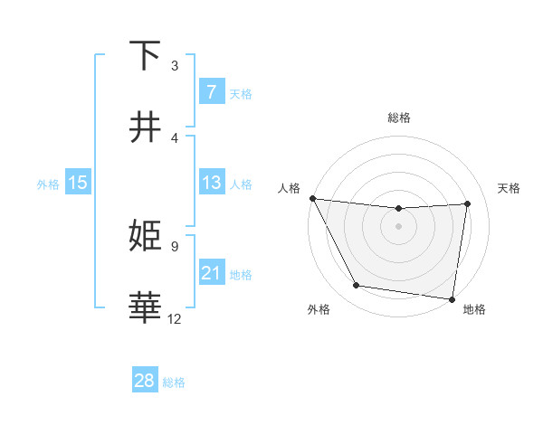 下井 姫華さんの総格は28画の1点!