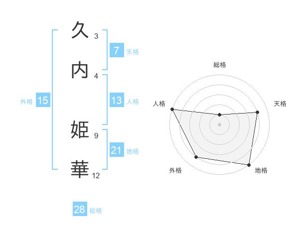 久内 姫華さんの総格は28画の1点!