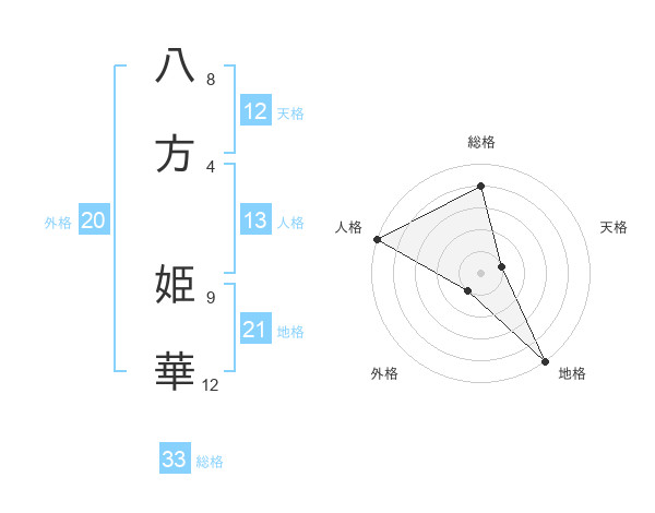 八方 姫華さんの天格は12画の1点!