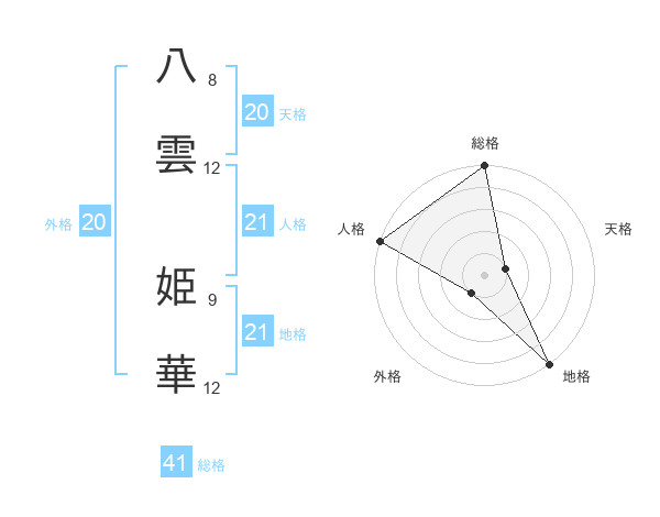 八雲 姫華さんの外格は20画の1点!