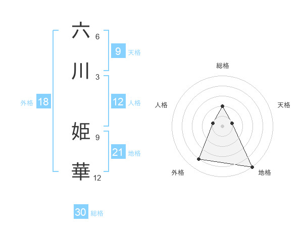 六川 姫華さんの総格は30画の2点!