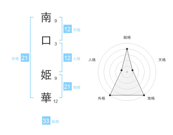 南口 姫華さんの天格は12画の1点!