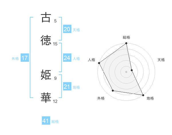 古徳 姫華さんの外格は17画の4点!