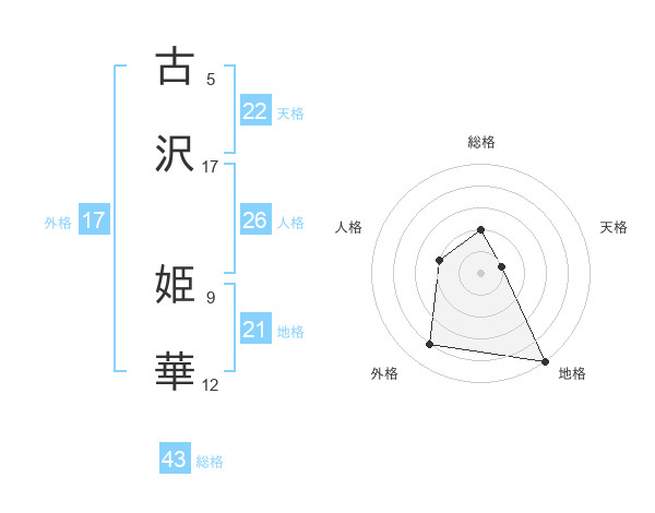 古沢 姫華さんの総格は43画の2点!