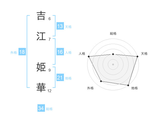 吉江 姫華さんの総格は34画の2点!