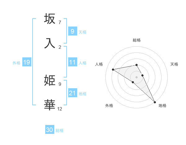 坂入 姫華さんの総格は30画の2点!