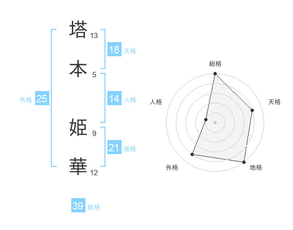 塔本 姫華さんを姓名の画数から五運を鑑定