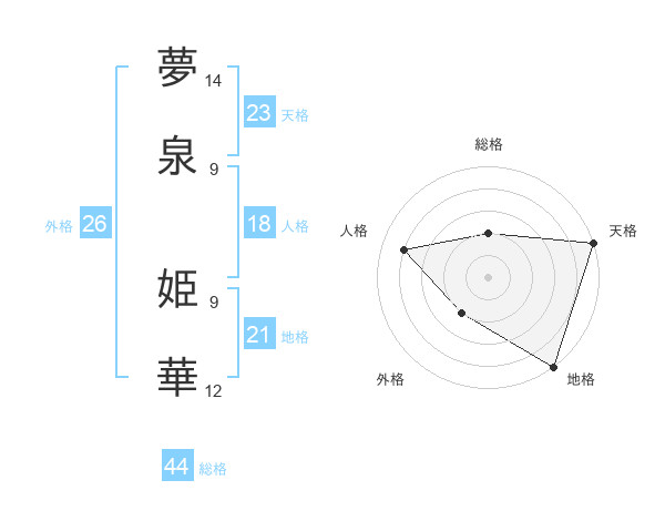 夢泉 姫華さんの天格は23画の5点!