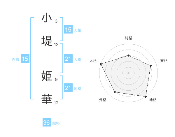 小堤 姫華さんを姓名の画数から五運を鑑定