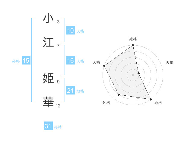 小江 姫華さんの総格は31画の5点!