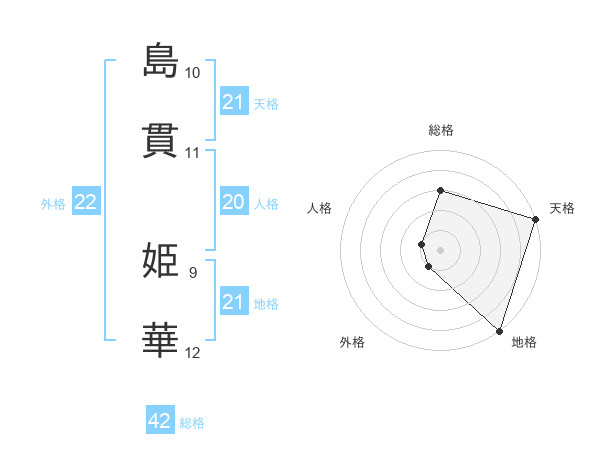 島貫 姫華さんを姓名の画数から五運を鑑定