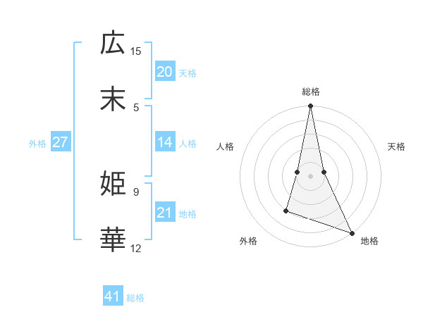 広末 姫華さんの総格は41画の5点!