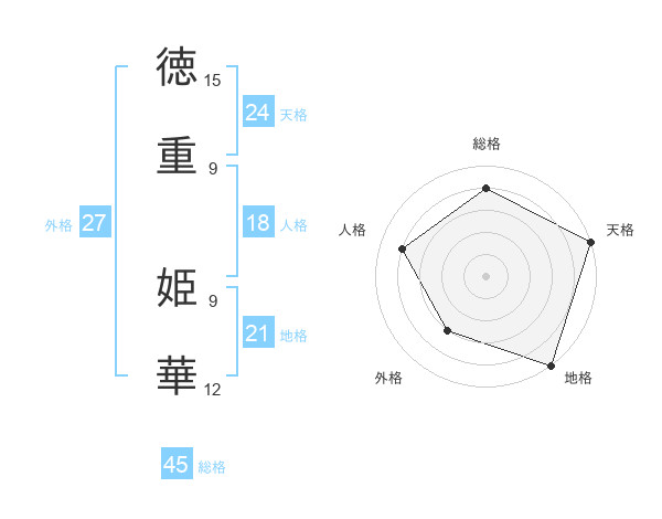 徳重 姫華さんの総格は45画の4点!