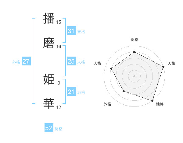 播磨 姫華さんの総格は52画の4点!