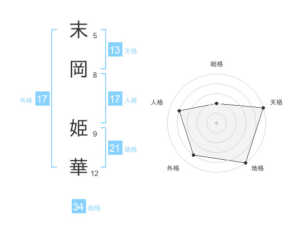 末岡 姫華さんの総格は34画の2点!