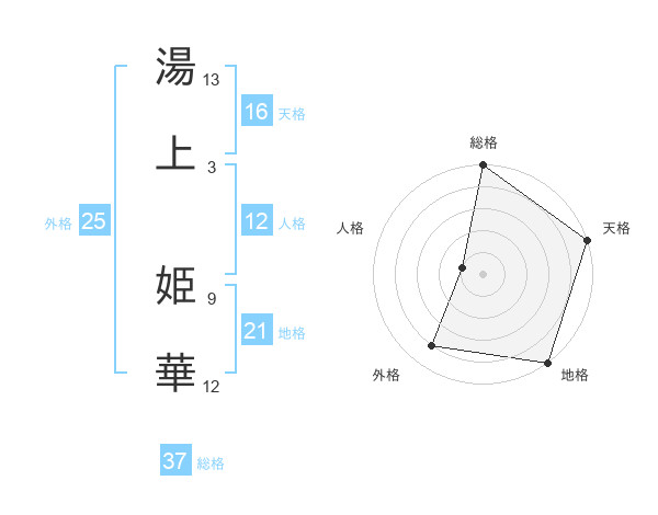 湯上 姫華さんを姓名の画数から五運を鑑定