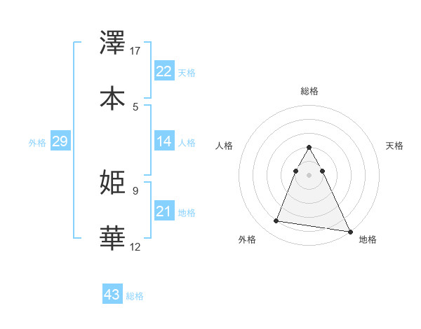 澤本 姫華さんを姓名の画数から五運を鑑定