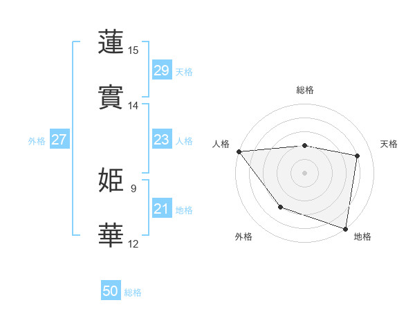 蓮實 姫華さんの総格は50画の2点!