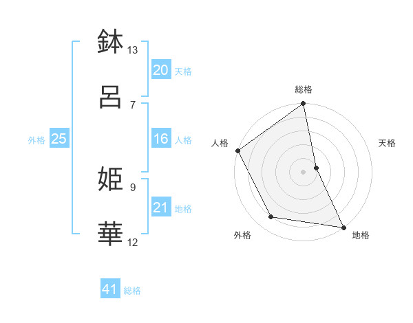 鉢呂 姫華さんを姓名の画数から五運を鑑定