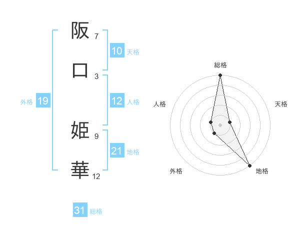 阪口 姫華さんの総格は31画の5点!