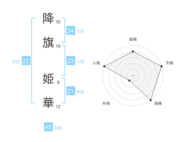 降旗 姫華さんの総格は45画の4点!