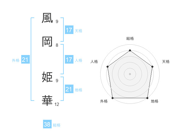 風岡 姫華さんの外格は21画の5点!