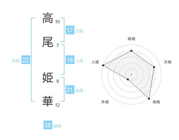 高尾 姫華さんの外格は22画の1点!