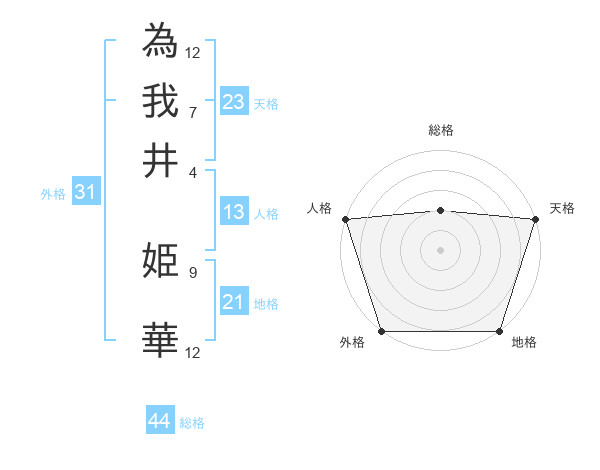 為我井 姫華さんを姓名の画数から五運を鑑定
