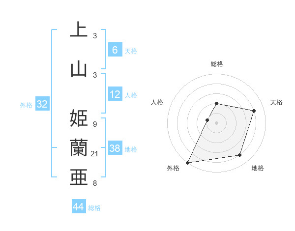 上山 姫蘭亜さんを姓名の画数から五運を鑑定