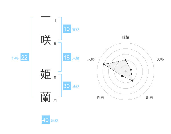 一咲 姫蘭さんの外格は22画の1点!